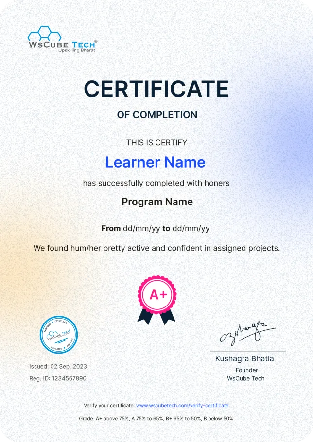 At WsCube Tech, we believe in learning by doing. That's why our course includes six months of live, hands-on training to ensure you're job-ready. You won't be alone on this journey. Our experienced mentors are there to guide you at every step, offering invaluable insights and personalized assistance.